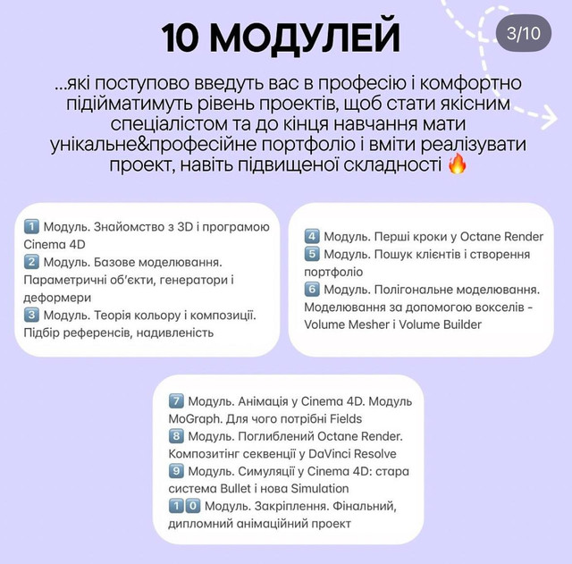 А станете якісними та затребуваними 3D моушн дизайнерами, які можуть виконати роботи навіть підвищеної складності, мають чергу із замовників та шалено кайфують від того, чим займаються
