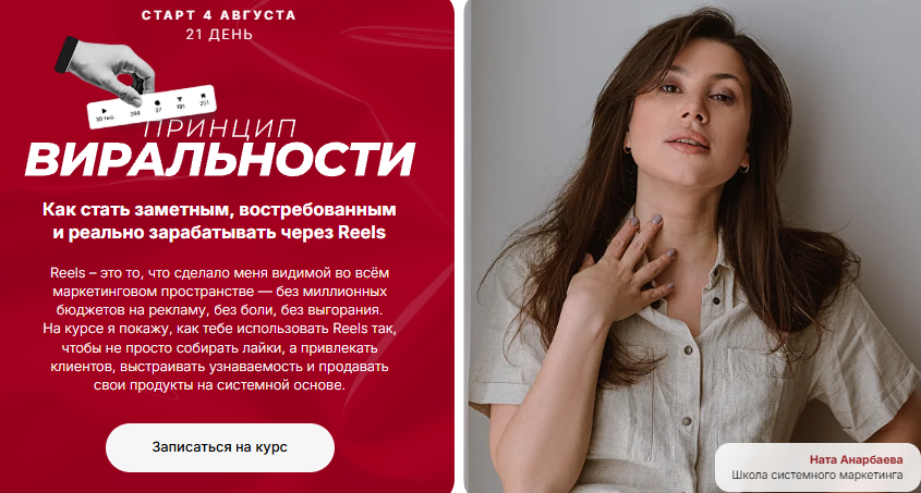 Придбаний Принцип виральности - марафон по залетающим рилс. Тариф Эксперт (Ната Анарбаева)
