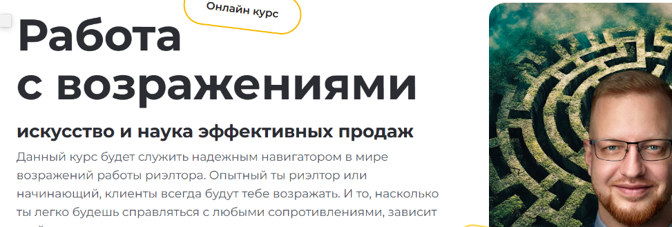 Данный курс будет служить надежным навигатором в мире возражений работы риэлтора. Опытный ты риэлтор или начинающий, клиенты всегда будут тебе возражать. И то, насколько ты легко будешь справляться с любыми сопротивлениями, зависит твой успех продаж.